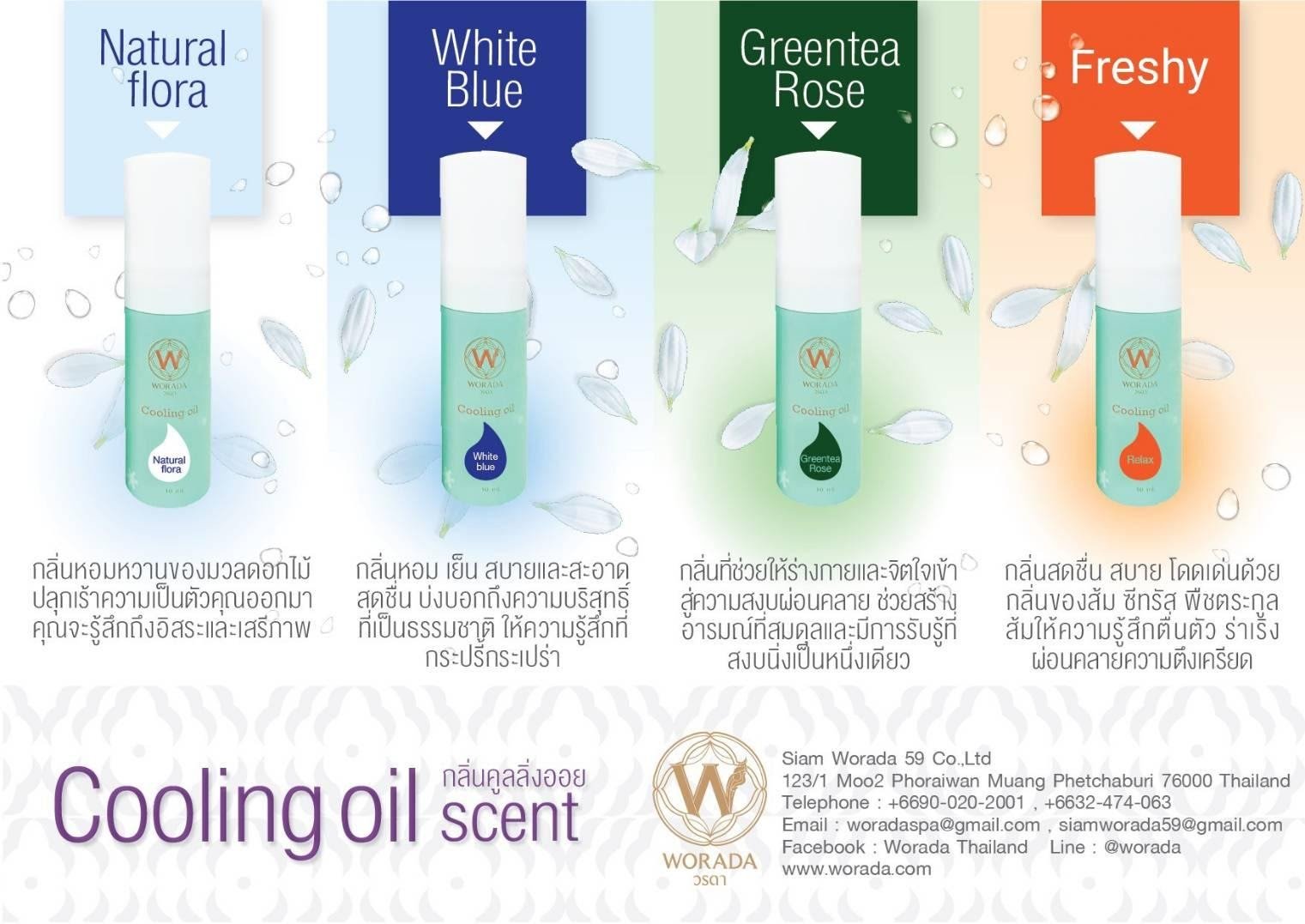 Cooling Oil by WORADA คือ การสกัดน้ำมันหอมระเหยจากใบมิ้นท์ ด้วยกระบวนการพิเศษเฉพาะของ WORADA เพื่อให้ได้กลิ่นที่เป็นเอกลักษณ์ไม่เหมือนใคร กลิ่นหอม เย็น สดชื่น สบาย ผ่อนคลาย